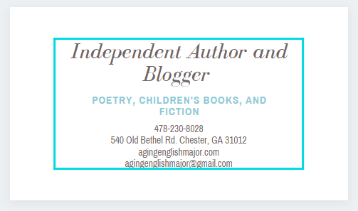 I designed my business card from my Canva account, using my logo. I want to add the business card to my promotion procedure so that when I send copies of my books to people, I can send my card with those copies. I am sure I will have other uses for my business card, eventually.