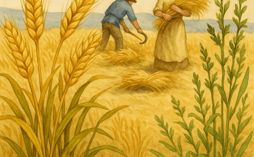 - Matthew 13:24–30 – “Let both grow together until the harvest. At that time I will tell the harvesters: First collect the weeds and tie them in bundles to be burned; then gather the wheat and bring it into my barn.”