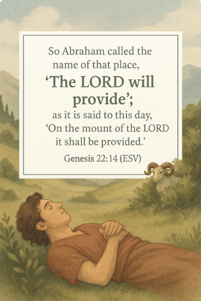 Abraham answered, “God himself will provide the lamb for the burnt offering, my son.” … So Abraham called that place The Lord Will Provide (Genesis 22:8, 13-14).
